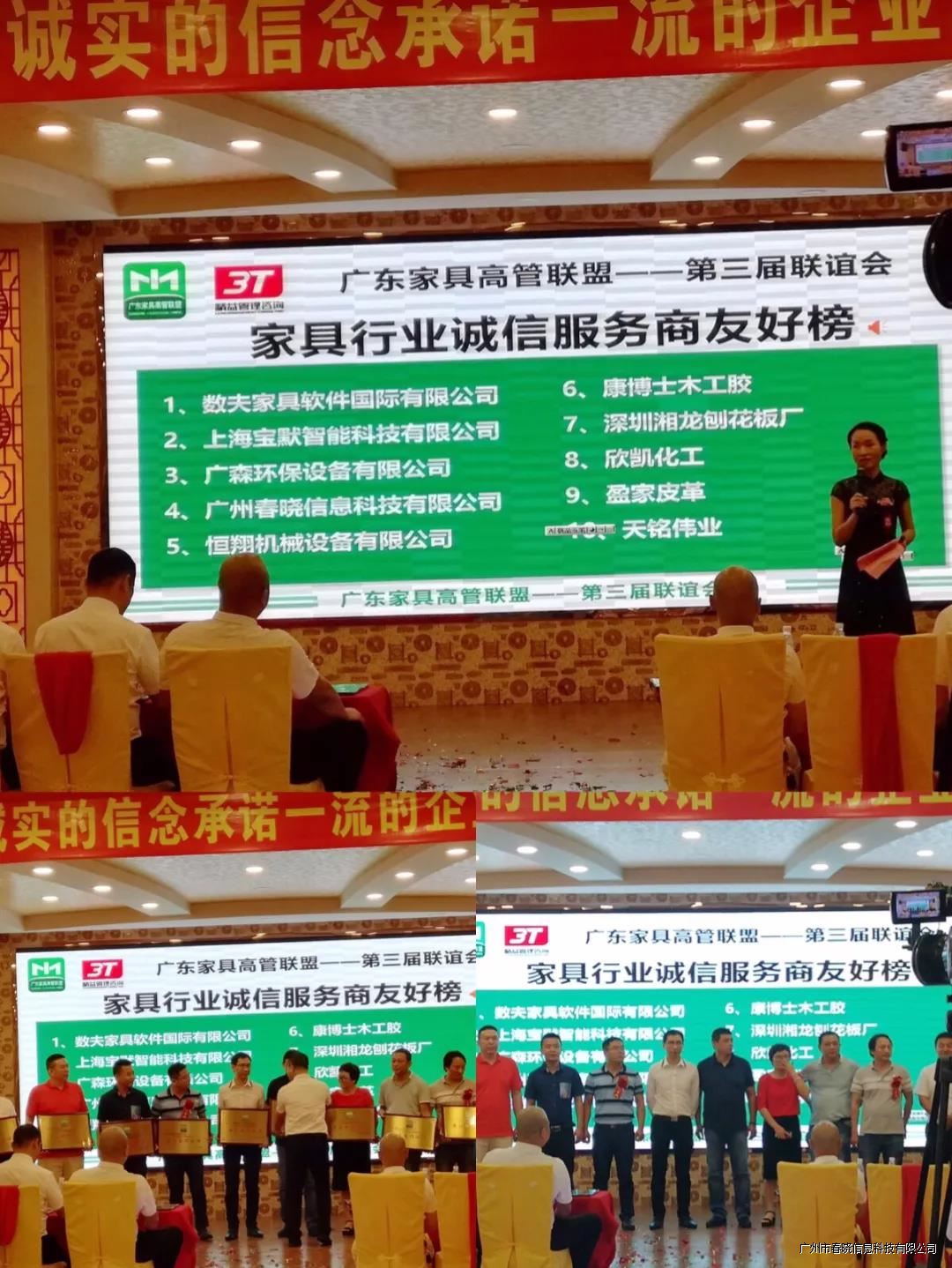 广州qm球盟会科技评为“广东家具高管联盟-家具行业-最佳合作伙伴”